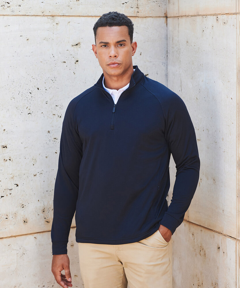 Needle-out face with inner fleece. Raglan sleeves. Side pockets with hidden zippers. Sports zip with self-coloured puller. Henbury Cut-out Brand label.